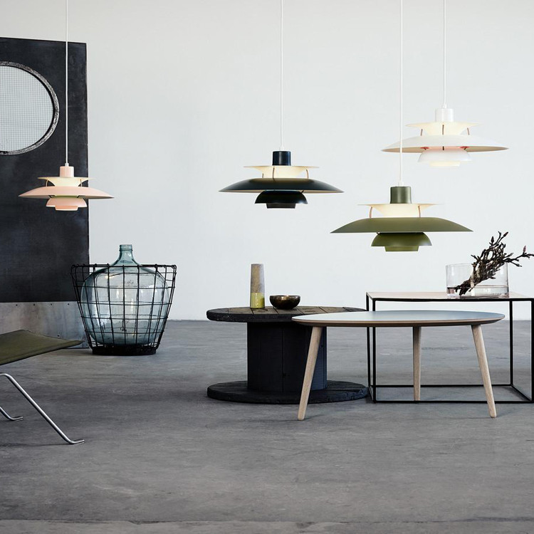 Подвесной светильник PH 5 был выпущен в 1958 дизайнером Poul Henningsen для бренда Louis Poulse. Лампа обеспечивает 100% освещение слепых зон. Плафон сконструирован с отражательной системой, состаящей из 3-х уровней, которая направляет основной поток света вниз, а так же, освещает с боковых сторон. Дизайнерский подвесной светильник представлен в нескольких цветах, создавая приятный акцент в современных интерьерых, нейтральных столовых или цветастых детских комнатах.